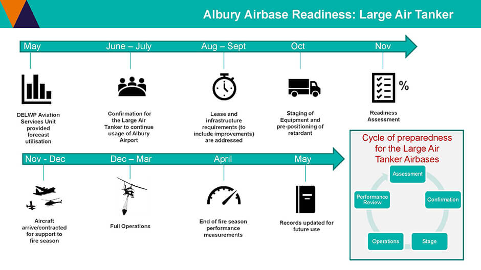 Albury Airport’s unique strategic location and capabilities, offer a strong air base for aerial firefighting operations in Southern NSW and Northern Victoria.